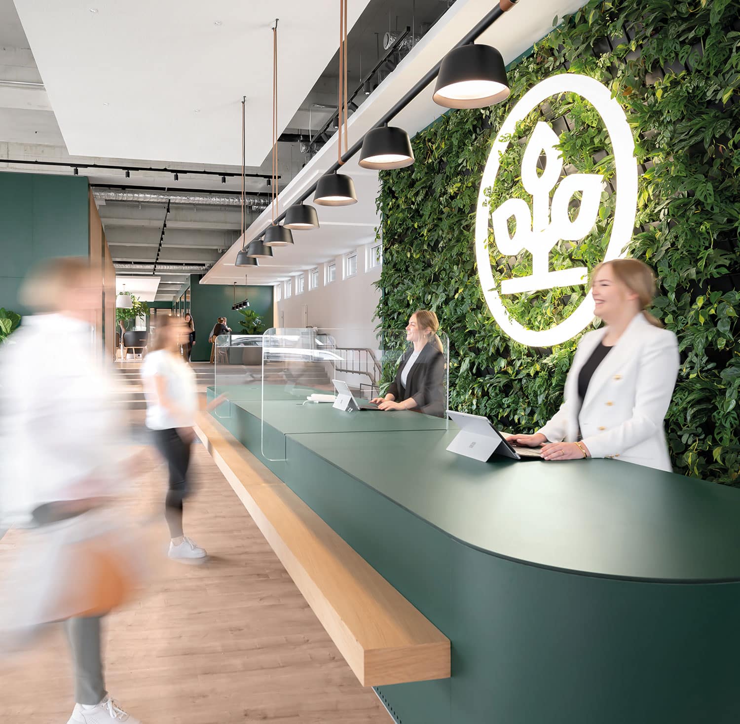 Auch die Mitarbeiterbindung und die Arbeitgebermarke können durch ein passendes Raumkonzept und individuell gebrandetes Interior gefördert werden. Kahle Bürowände weichen beruhigenden Grünoasen, und flexible Module schaffen einen Ort der Potenzialentfaltung und des Wachstums.
