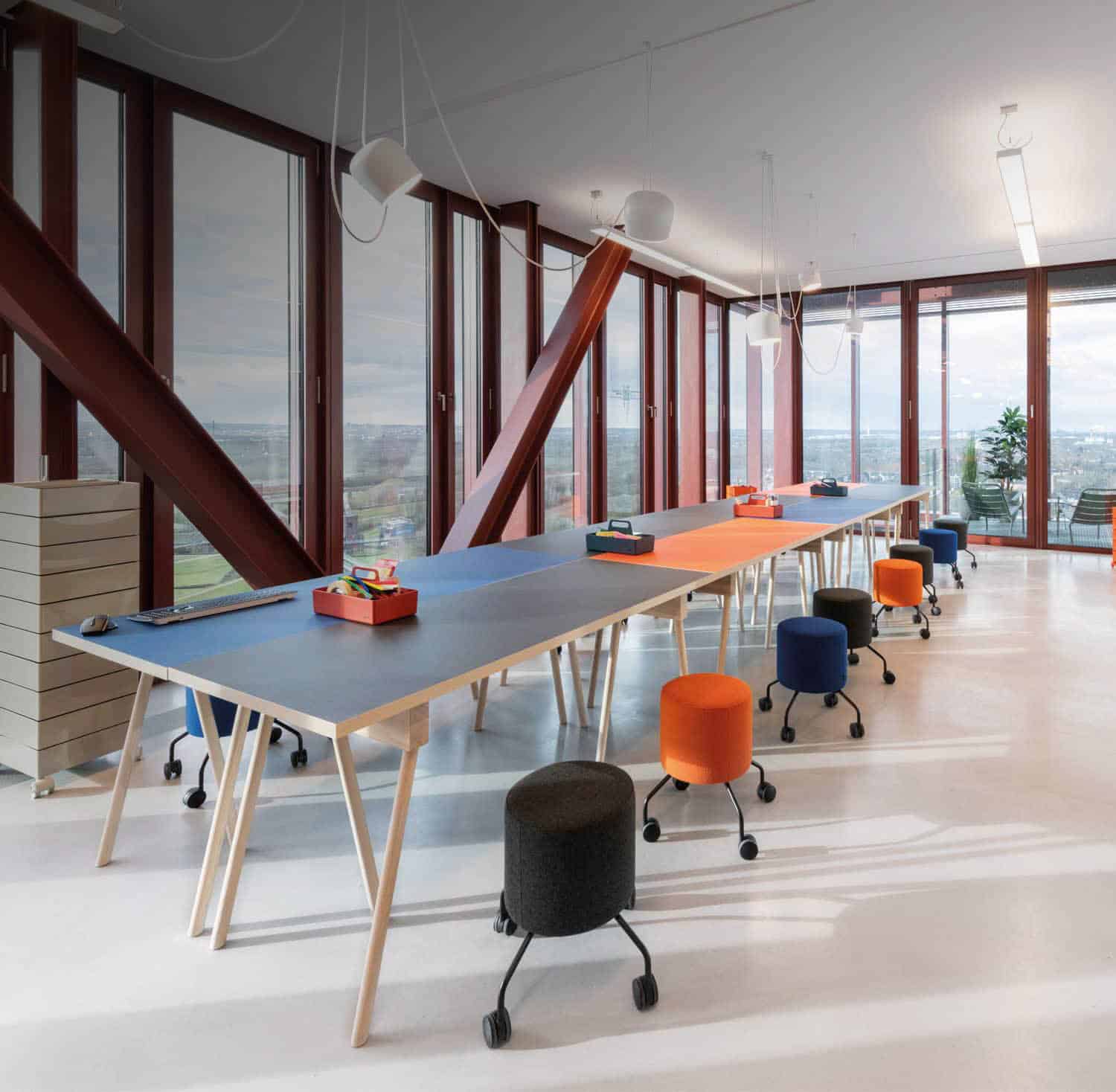 Dabei entwerfen wir auf agile Arbeitsmethoden und New Work zugeschnittene Raumkonzepte.